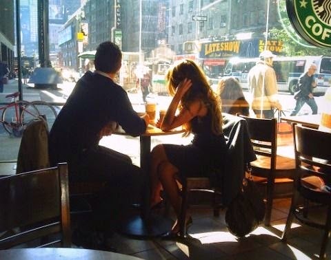 Então... No local onde a luz parecia ter mais dificuldade em entrar, e onde os lugares vazios pareciam ainda mais vazios. Lá entrou ele. O homem mais elegante com quem me tinha cruzado em bastante tempo. E olhares cruzaram.se.. E respirações sustiveram.se. E batimentos cardíacos aceleraram. E ele olhava para mim, como se de repente tivesse perdido o rumo das coisas, como se de repente se tivesse esquecido do que ia ali fazer. Reparei que o seu sorriso era hesitante, como se de repente as palavras se tivessem perdido das suas cordas vocais.